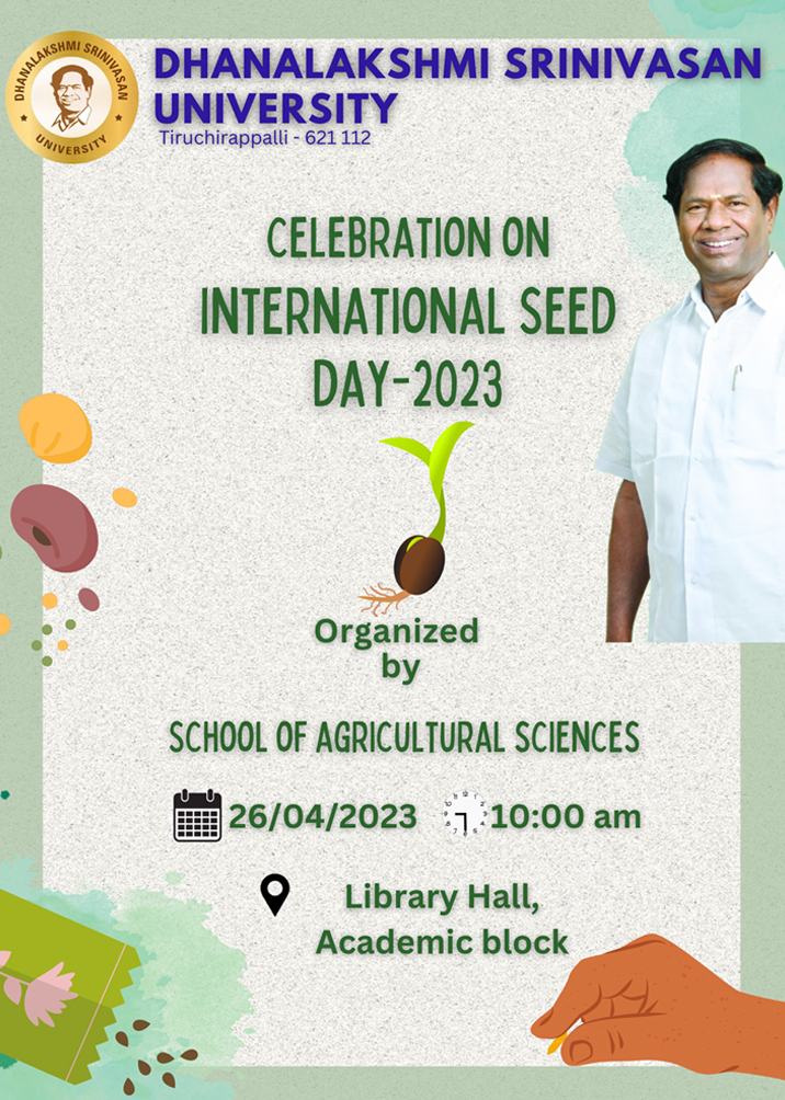 Seed is the basic and most critical input for sustainable agriculture. The response of all other inputs depends on the quality of seeds to a large extent. For farmers, seed is life. Therefore, integrity and sanctity of every seed should be preserved and protected. Recognizing the importance of seeds, every year, on 26th April, International Seeds Day is celebrated. Dhanalakshmi Srinivasan University, School of Agricultural Sciences (SAS) celebrated the same to make the students aware of the importance of seed.