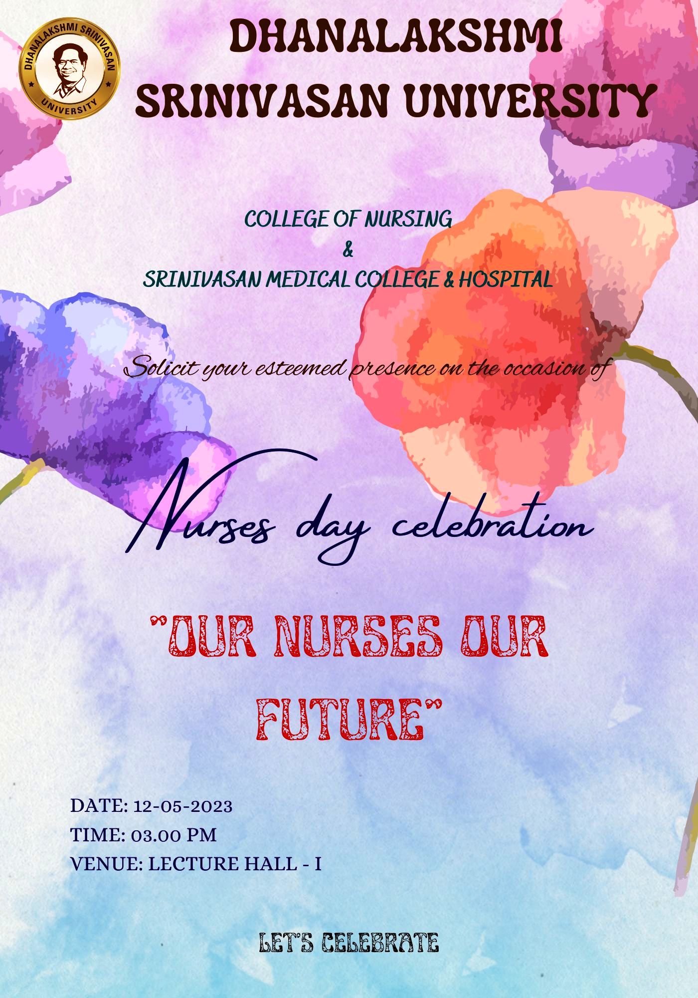 International Nurses day was celebrated in DSU by College of Nursing and Nurses of Srinivasan Medical College and Hospital Samayapuram on 12.05.2023 in a grand manner in remembrance of pioneer of Nursing Ms. Florence Nightingale’s birth day.