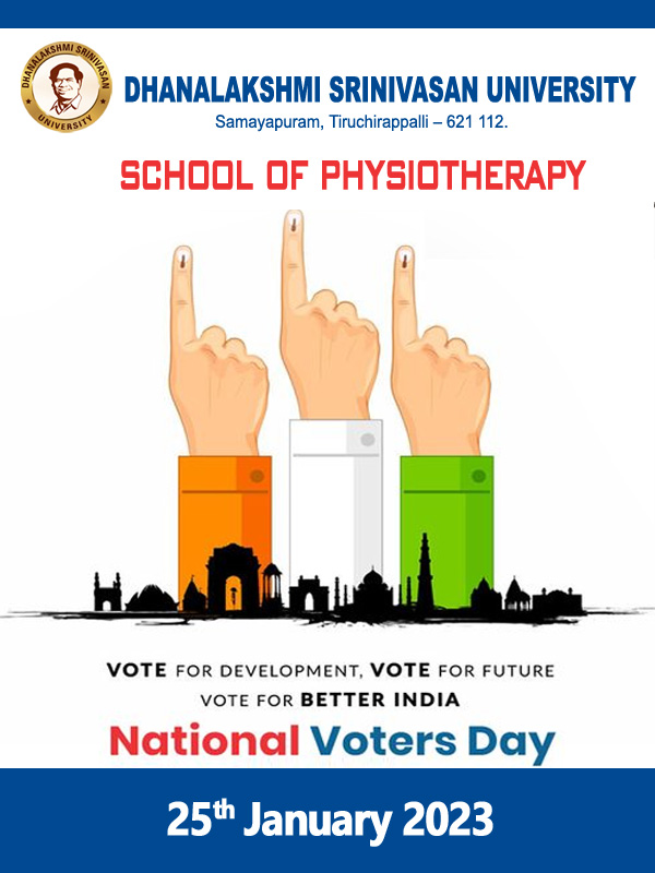 On the Occasion of National Voter's Day (25/01/2023), staff and students I & II year from the School of Physiotherapy took the pledge to be upstanding citizens of India and to exercise their political franchise.