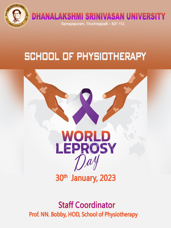 On the occasion of Leprosy day held on 30th January, 2023 Dhanalakshmi Srinivasan University School of Physiotherapy Students, attended a one day Orientation program at The Leprosy Mission Hospital, Vadathorasalur, Kallakurichi District, Tamil Nadu. Dr Helen G Roberts, Director of TLM Leprosy mission gave the detailed lecture about leprosy. The students visited the vocational training centers , and had the wonderful opportunity to ask the patients about their life experiences and developed empathy for those affected by leprosy. The hands on program was conducted by physiotherapist Mr. VijayKumar and Mrs. Maheswari, Counsellor helped students to assess the patients and gave the practical knowledge diagnosing patients suffering from leprosy.