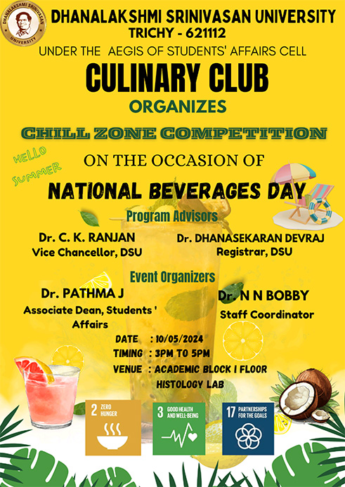 Glimpses of "Chill Zone - The Summer Drink Competition" held in Dhanalakshmi Srinivasan University, Trichy organised by "The Culinary Club" under the Aegis of Division of Students' Affairs, DSU.