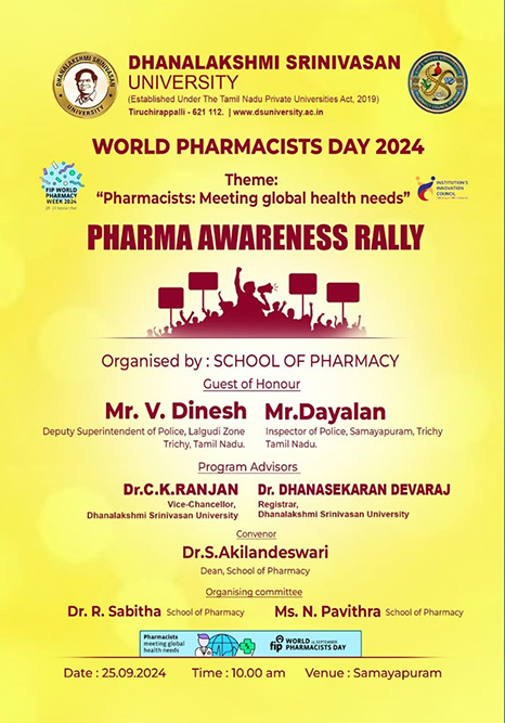 #WorldPharmacistDay2024 #PharmaRally #Healthcare #GlobalHealth #DhanalakshmiSrinivasanUniversity #PharmacistsForHealth