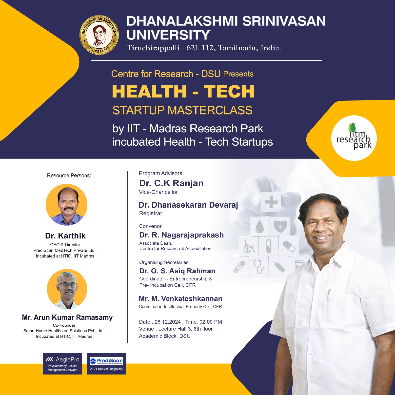DSU's Centre for Research, Entrepreneurship & Pre-Incubation Cell hosted an insightful masterclass bringing together healthcare professionals, students, and entrepreneurs to explore innovations in HealthTech.