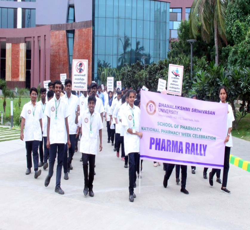 Pharma awareness Rally was conducted by School of Pharmacy,Dhanalakshmi Srinivasan University,Trichy on the occasion of NATIONAL PHARMACY WEEK CELEBRATION-2024 .