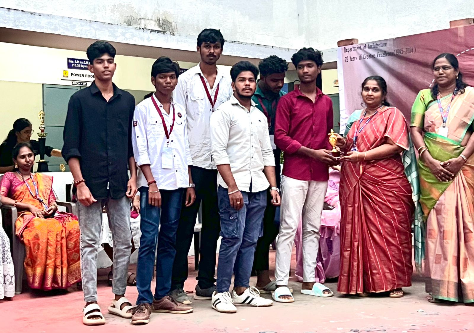 On October 3rd and 4th 2024, students from School of Architecture - Dhanalakshmi Srinivasan University participated in the state level inter-college symposium conducted by Department of Architecture, Periyar Maniammai Institute of Science and Technology, Thanjavur. Our student participation showcased exceptional talent and spirit, particularly in the throw ball competition, where they secured a well-deserved victory and became the champions. In addition to their sporting success, our students actively engaged in on the spot competitions like face painting, displaying their artistic skills and creativity. The cultural activities provided a wonderful opportunity for everyone to connect and celebrate diverse talents, enhancing the overall experience. Moreover, our students had the chance to observe a skill program that offered valuable insights and practical knowledge, further enriching their academic journey.
