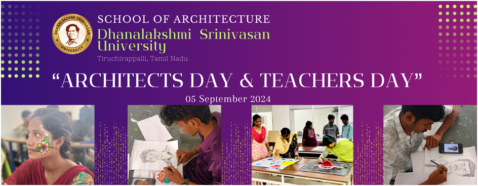 Dhanalakshmi Srinivasan University, School of Architecture hosted a combined celebration of Architects’ Day and Teachers’ Day with a vibrant program that honoured the roles of educators and professionals in shaping the built environment by Ar. S.Sathya Vishnu Karthick Dean, School of Architecture and faculty of the School, on 05.09.2024. The event featured prominent speakers including Dr.Jayasudha Member of Doctoral Committee, Anna University and renowned Ar. G. Rajaa, Principal Architect at Signature Design and Chairman, Indian Institute of Architects, Trichy Centre.